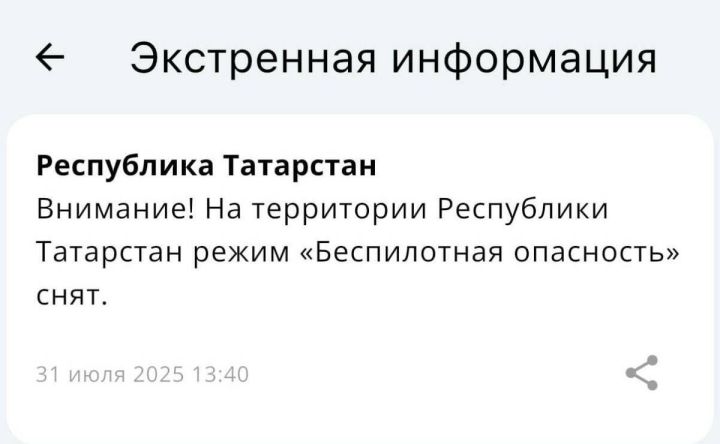 Отбой тревоги: Режим беспилотной опасности снят в Татарстане