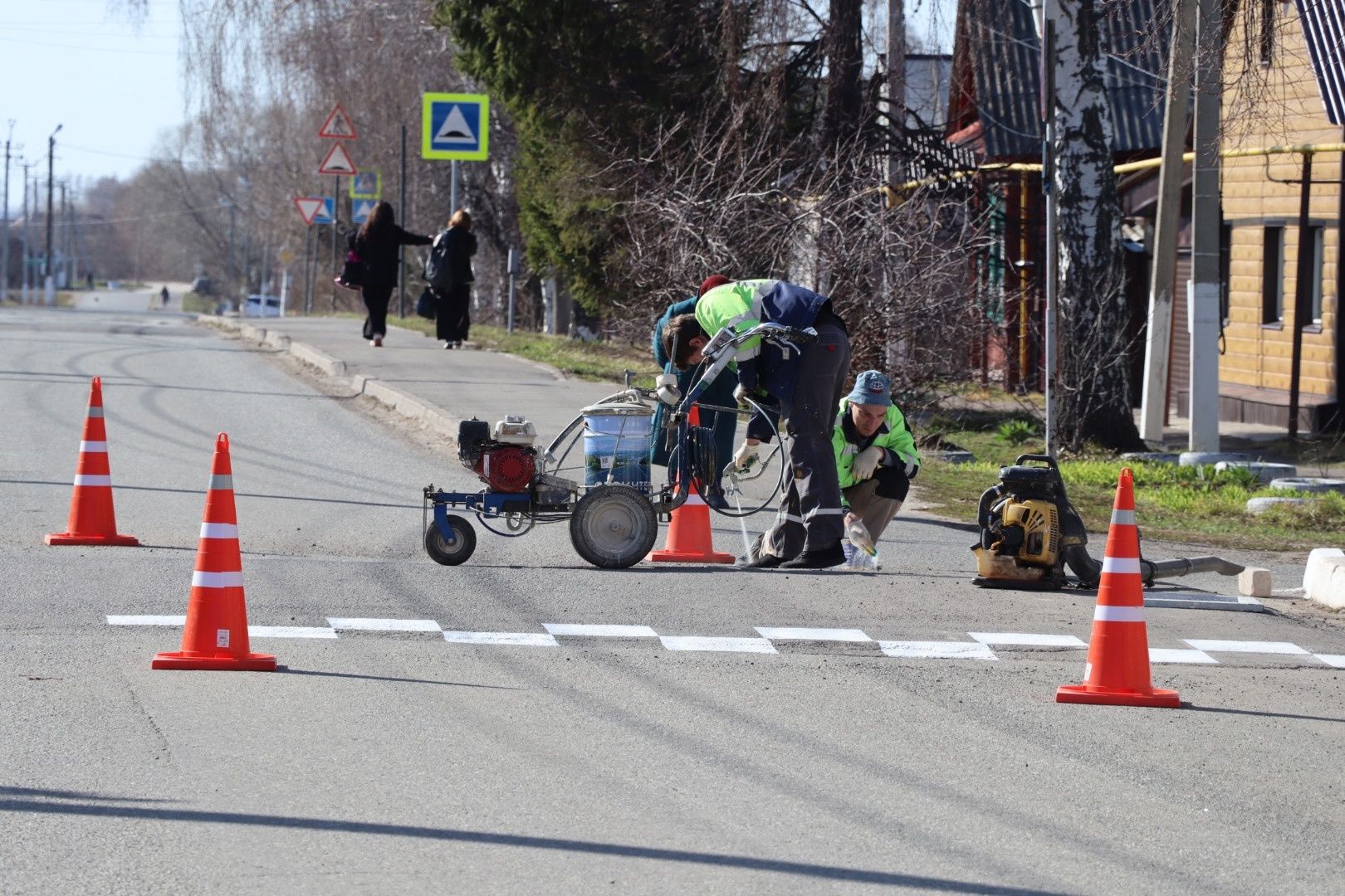 После осенне-зимнего периода освежается разметка на городских дорогах.