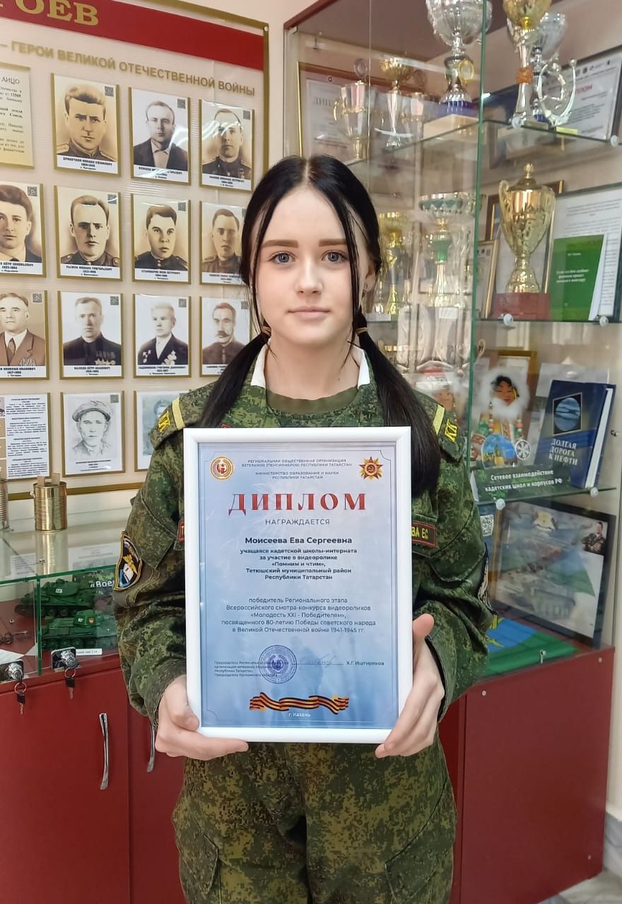 Одним из победителей в конкурсе стал видеоролик воспитанницы 10 класса Тетюшской кадетской школы-интернат Моисеевой Евы (руководитель Хуснутдинова Н.В.), в котором она рассказала историю своего прадедушки Николая Евдокимовича Ерусланова. Об этом сообщают из Тетюшской кадетской школы-интернат.