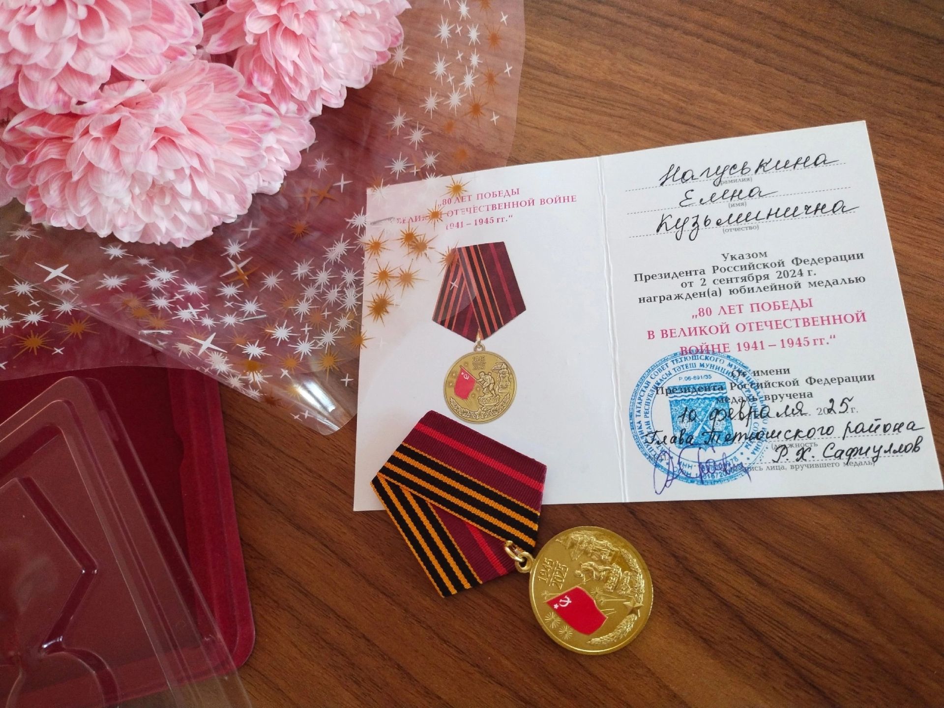 В Тетюшском районе труженику тыла вручили юбилейную медаль к 80-летию Победы