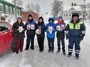 В Тетюшах отряд ЮИД «Дорожный патруль» и ГИБДД подарили женщинам-водителям внимание и безопасность к 8 марта.