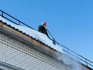 В Тетюшах идёт очистка кровли многоквартирных домов и административных зданий от снега