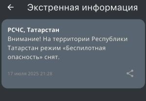 МЧС России: в Татарстане снят режим «Беспилотная опасность»