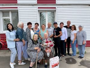 Поздравить старейшую жительницу многоквартирного дома по улице Площадь Свободы пришли родственники, соседи, приглашенные гости. В руках собравшихся – букеты цветов, открытки и памятные подарки.