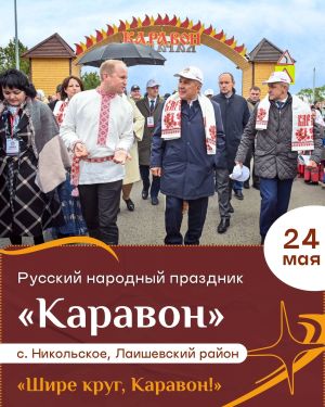 24 мая село Никольское в Лаишевском районе приглашает на яркий русский народный праздник «Каравон» — гостей ждут масштабные хороводы, мастер-классы по старинным ремеслам, колоритная ярмарка и этнические угощения.