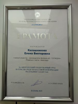 Главный редактор «Авангарда» Елена Калашникова удостоена грамоты Татмедиа