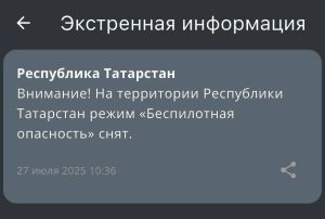 Об отмене режима сообщили через официальное приложение МЧС России.