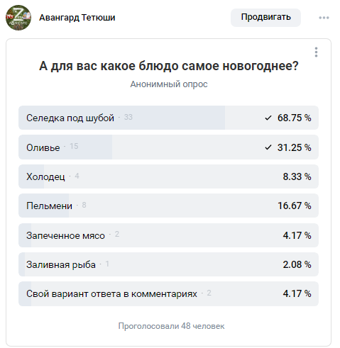 В соцсети в группе районной газеты «Авангард» было предложено назвать самое новогоднее блюдо..