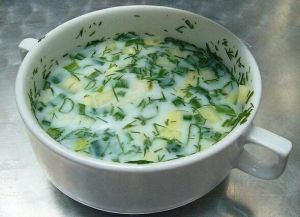 Кирәк: пешкән ит (терлекнеке), тозланмаган кыяр, оеган сөт һәм күп итеп яшеллек.