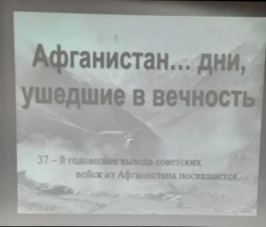 Студенты 22 группы Тетюшского сельскохозяйственного техникума недавно совершили познавательную экскурсию в Музей истории Тетюшского края. Там сотрудники музея подготовили специальное мероприятие под названием «Афганистан… дни, ушедшие в вечность», приуроченное к 37-летию вывода советских войск из Афганистана.