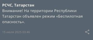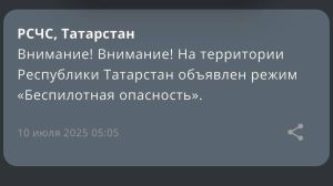 Режим «Беспилотная опасность»: Татарстан с 05:05 объявил особый уровень безопасности