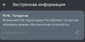 Основные детали режима: Территория объявления: Республика Татарстан Время введения: 4 часа 34 минуты.