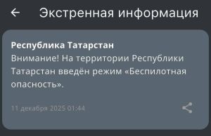 Режим «Беспилотная опасность» введен в Республике Татарстан