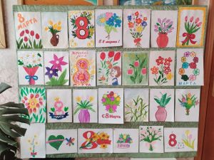 Выставка детских рисунков к 8 Марта в Кильдюшевской школе