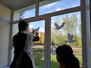 Школьники и педагоги Нармонской школы украсили окна учреждения символами победы в честь 80-летия окончания Великой Отечественной войны.